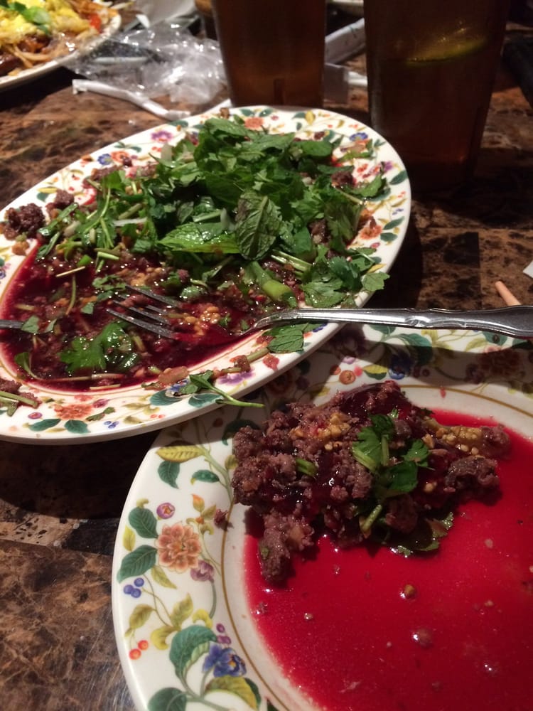 Authentic Lao food. Not tailored to American taste buds at all. That's good stuff. Especially the intestine dishes 29 and 30 ... if you're into that.